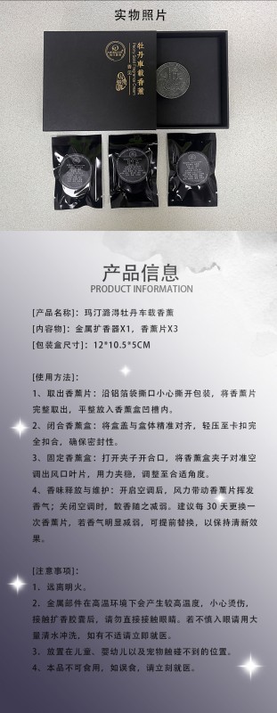 4.香味释放与维护:开启空调后,风力带动香薰片挥发香气;关闭空调时,散香随之减弱。建议每30 天更换一次香薰片。若香气减弱可提前更换,以保持清新效果。