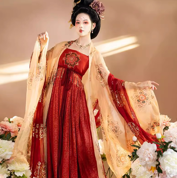 曹县喜云缘汉服女服【福耀】唐代连体胸破裙印花复原春夏