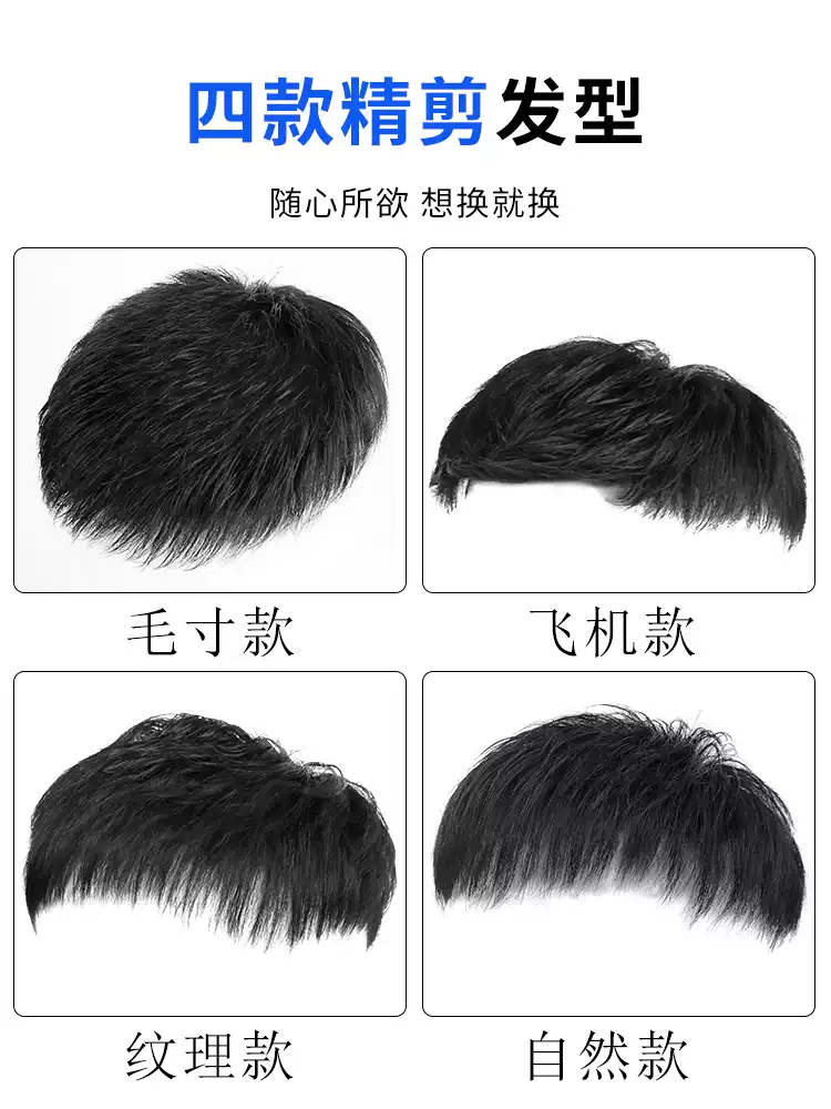 男士假发短发真发帅气隐形自然补发块遮白发地中海秃顶男款假发片