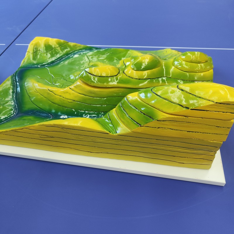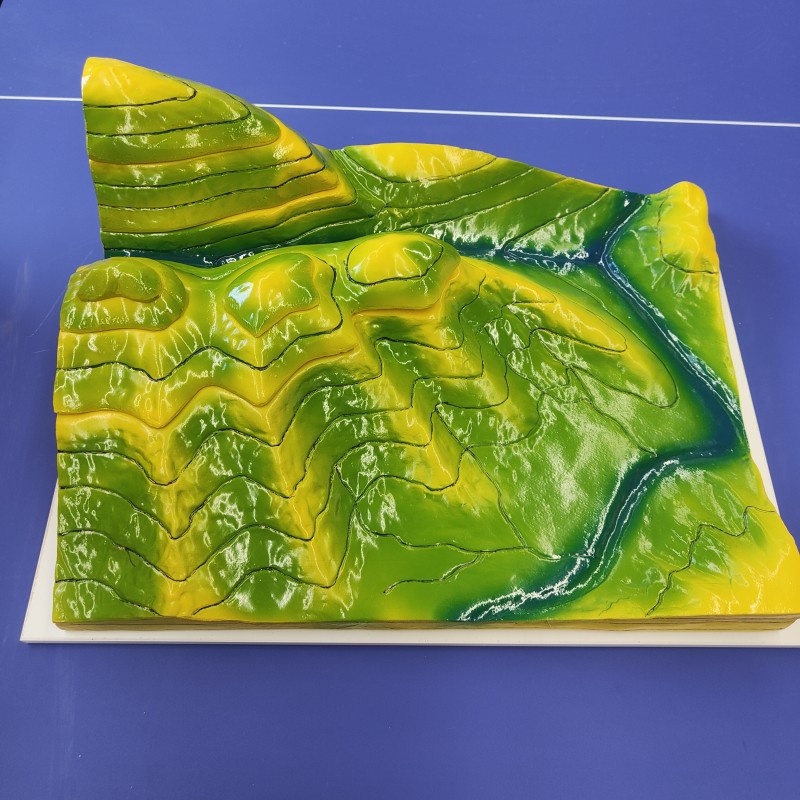 模型表面绘等高线、沿等高线可取下若干层,裸露出的平面都绘有各层高度相对应的等高线,以方便教学。