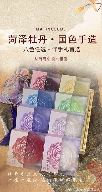 | 产品名称 Product Name | 牡丹精华润泽手工皂 / Peony Essence Moisturizing Handmade Soap |