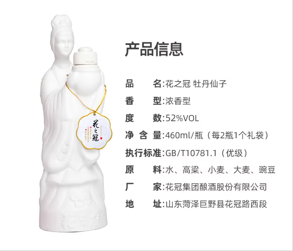 花冠集团菏泽白酒 花之冠 牡丹仙子 浓香型纯粮食酒
