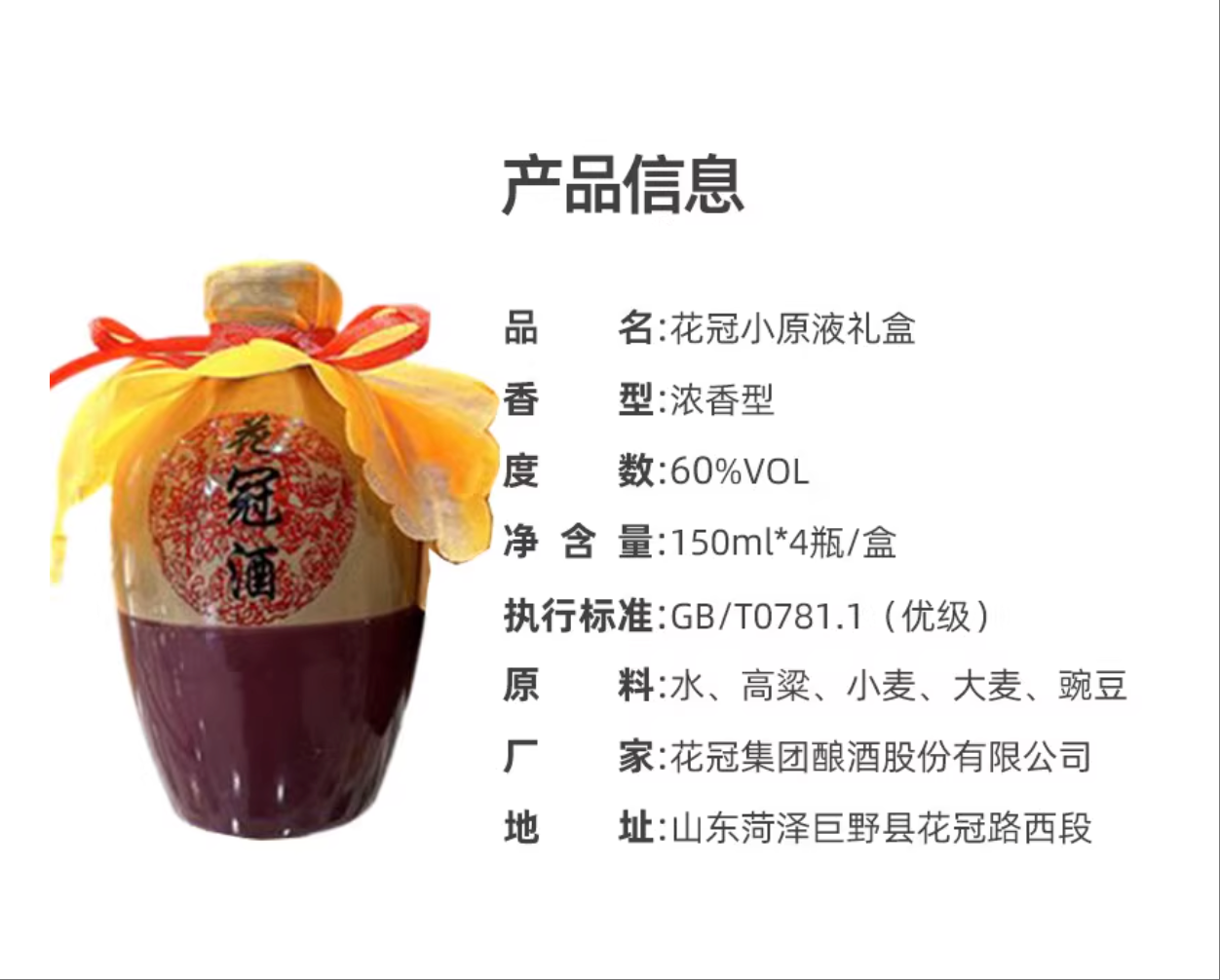 冠群芳 花冠酒原液小礼盒60度150mlx4瓶节日送礼自饮