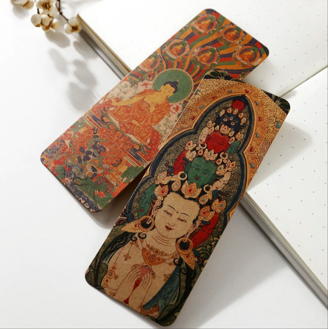 西藏唐卡纸书签8张 中国风传统壁画文创礼物复古风阅读书简索引卡