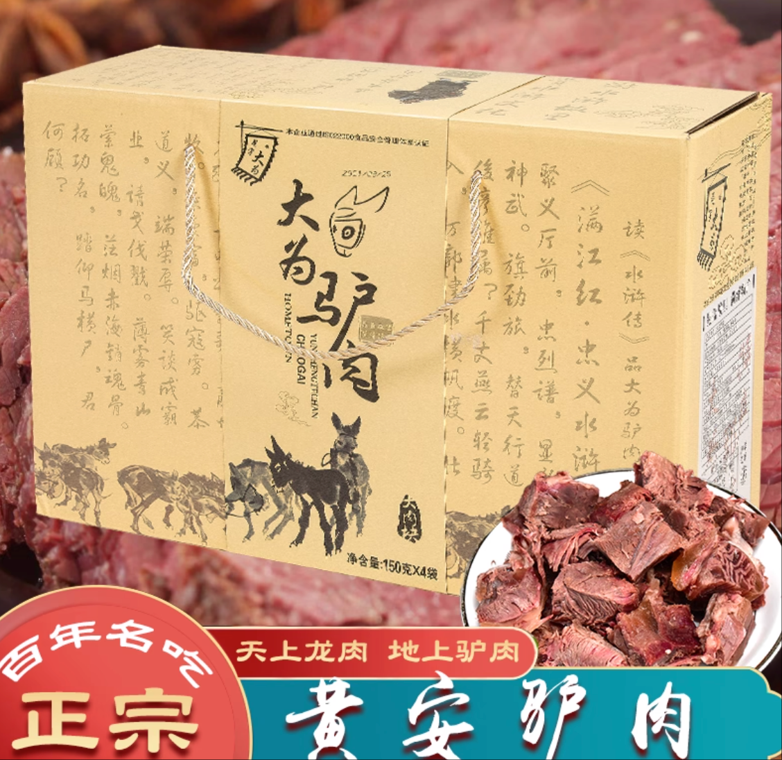 712克黄安礼盒【178克*4袋】含料包,750克黄安驴肉礼盒【150克*5袋】无料包,600克大为驴肉礼盒【150克*4袋】无料包,750克大为驴肉礼盒【150克*5袋】无料包