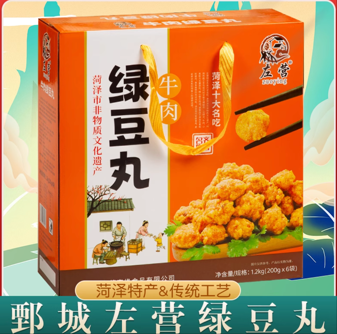 山东菏泽鄄城特产名吃左营牛肉绿豆面火锅脆焦丸子手工炸丸子礼盒
