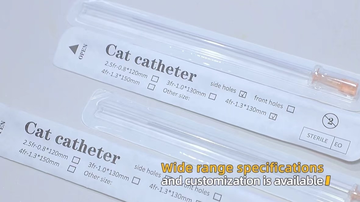 The PA series feline urinary catheters are available in three types: end-opening without guidewire, end-opening with guidewire, and dual-side opening with guidewire. These catheters, composed of a tube, valve, and guidewire, are primarily used for urinary catheterization in pets. The PA catheters are made from medical-grade polyamide (PA) material, known for its low friction. PEBAX catheters, made from nylon elastomer, offer superior flexibility and resistance to kinking compared to polyethylene (PE), with excellent biocompatibility and minimal urethral irritation.